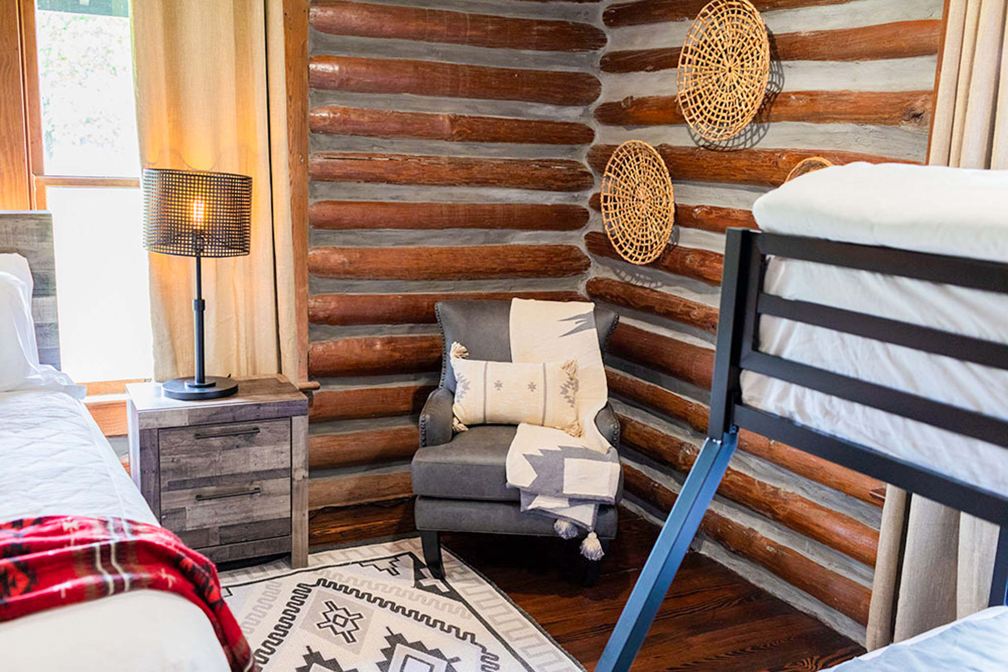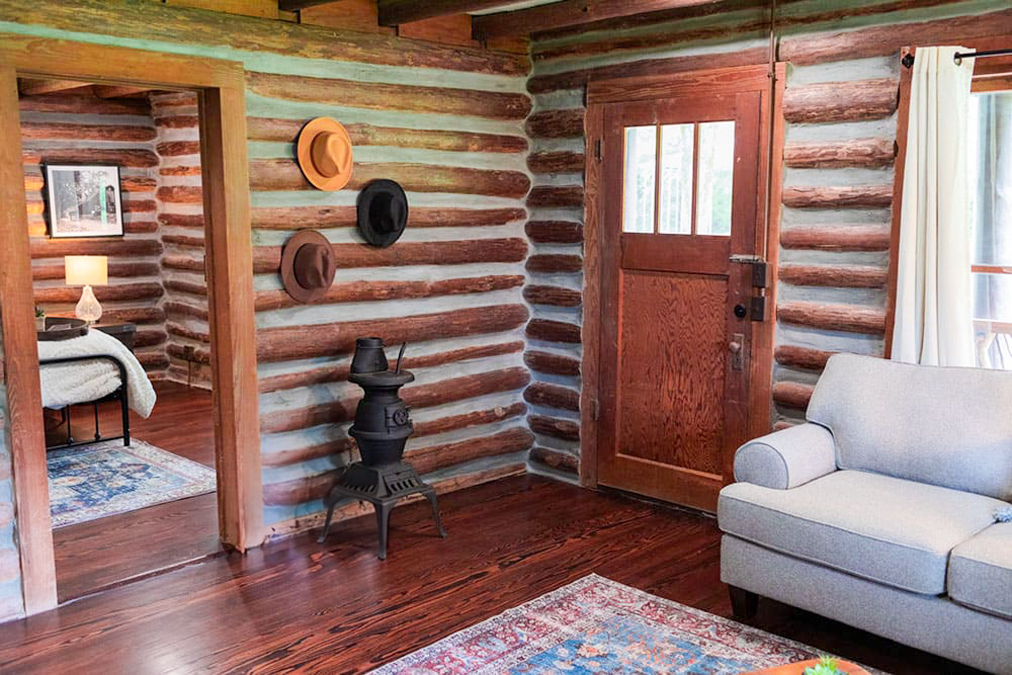 Step into a piece of history with Crawford Cabin — a beautifully restored 100-year-old log cabin that blends rustic charm with modern comfort. Original log walls and vintage wood floors create a cozy, heritage-rich vibe, while updates like central heat and AC, a full kitchen, and indoor plumbing ensure you have all the comforts of home.