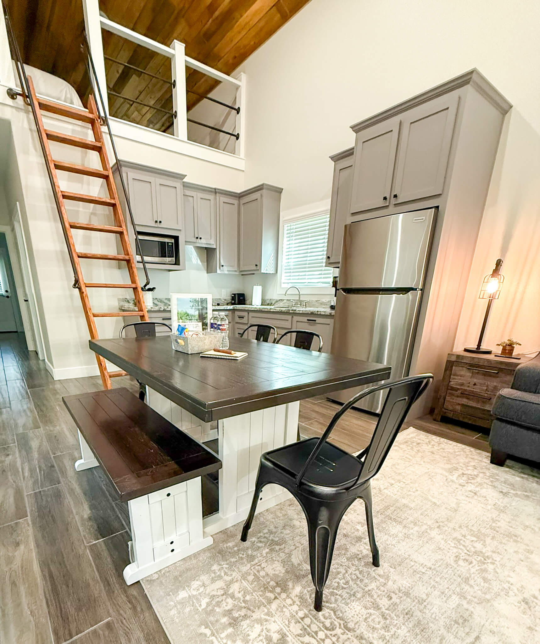 Wanderer’s Cabin is the ideal getaway for families seeking a spacious and cozy retreat in nature. Tucked along the banks of Rocky Creek, this deluxe cabin features a charming 300-square-foot loft that comfortably sleeps four, making it perfect for family vacations or a group of friends.