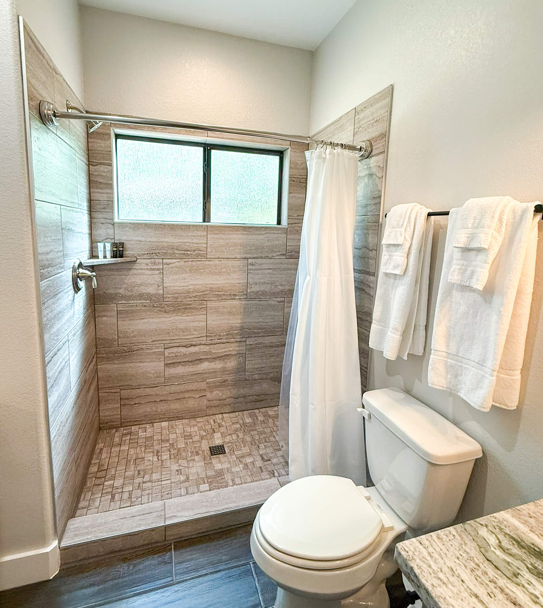 Wheelchair access is available at select locations throughout the resort. Cabin 31 (Water's Edge) and Cabin 33 (Creekside Cabin) are ADA accessible, as are some of our RV sites. While not all rental units are fully accessible, we do offer ramps throughout the resort. Please contact us to confirm accessibility before booking.