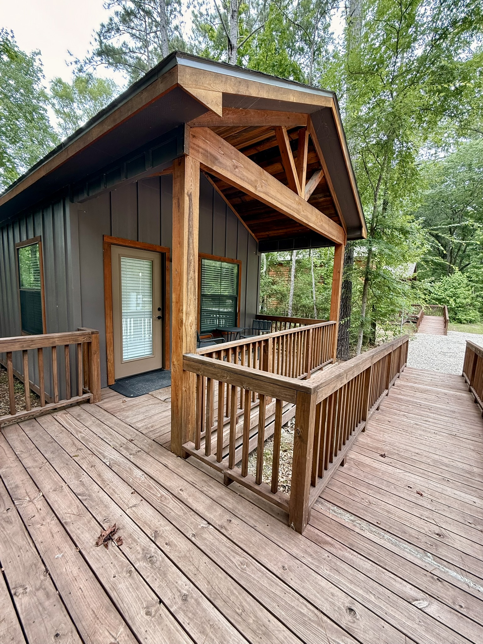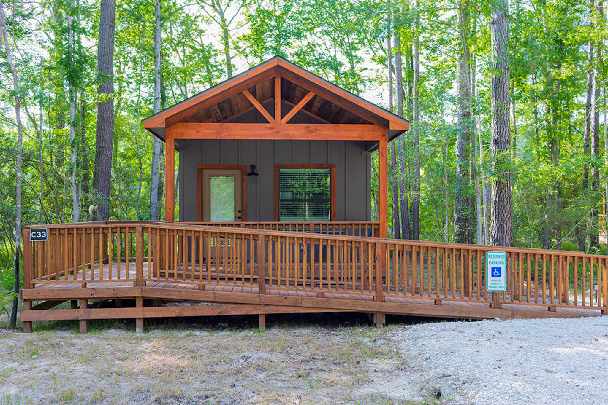 Wheelchair access is available at select locations throughout the resort. Cabin 31 (Water's Edge) and Cabin 33 (Creekside Cabin) are ADA accessible, as are some of our RV sites. While not all rental units are fully accessible, we do offer ramps throughout the resort. Please contact us to confirm accessibility before booking.