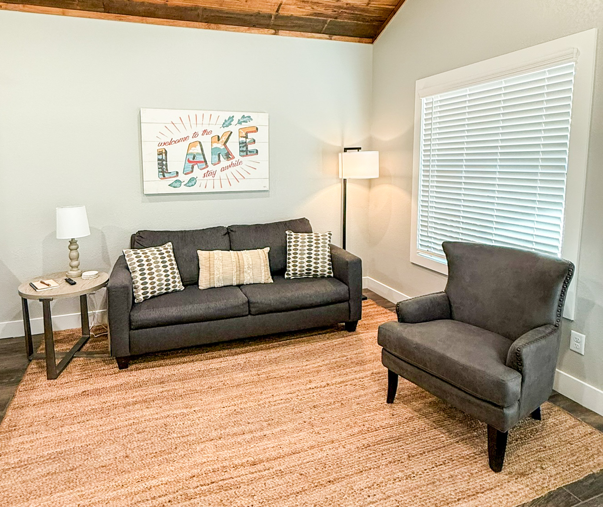 Step out from the bedroom onto your private back porch and enjoy the soothing views of the water. Inside, the living area features a sleeper sofa for additional guests, and the full kitchen is stocked with everything you need to settle in and stay a while.