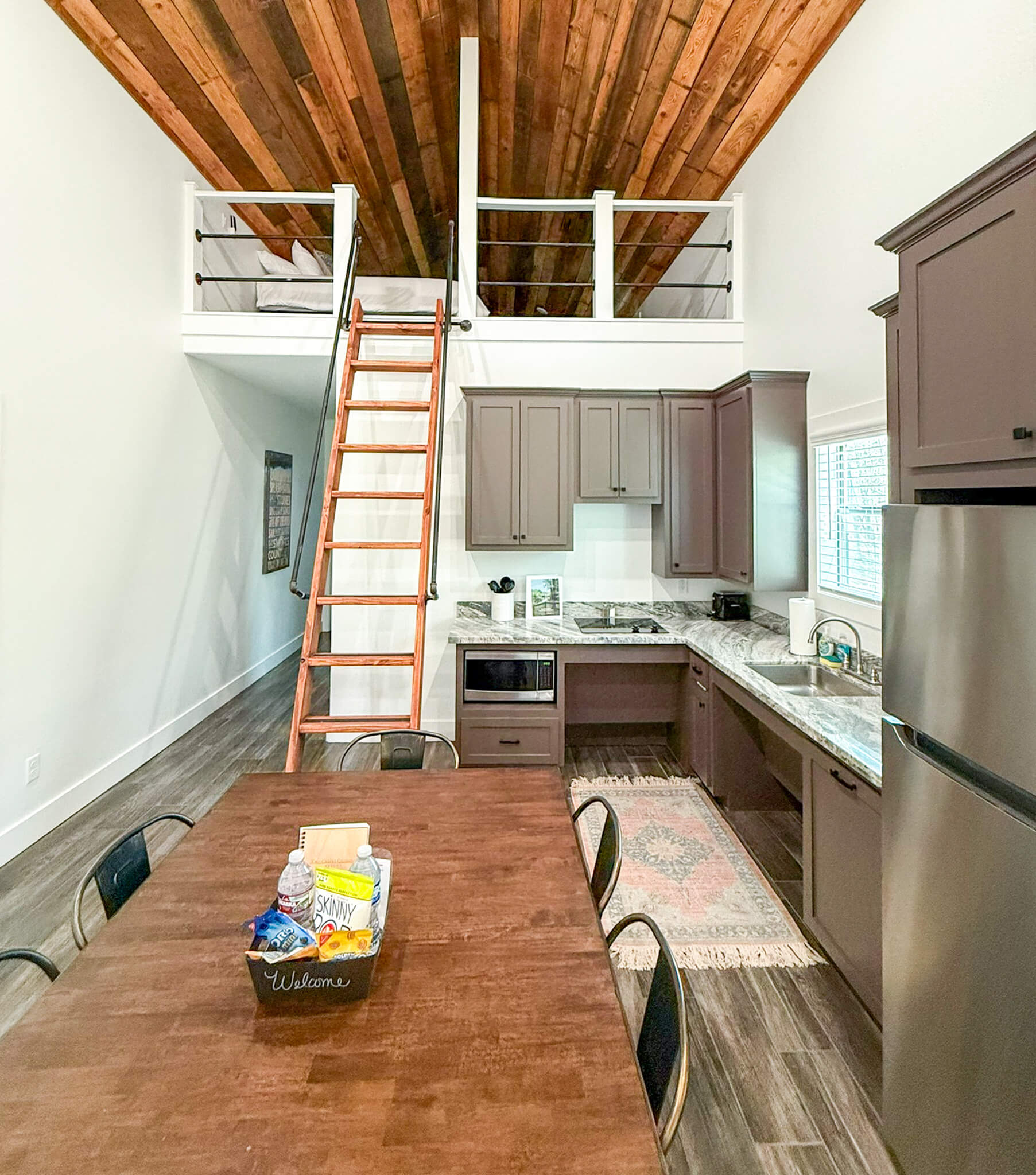 Water’s Edge offers a peaceful retreat right on the banks of scenic Kickapoo Creek—perfect for families or anyone looking to relax in a cozy, creekside cabin. With a spacious 300 square foot loft and fully equipped kitchen, it’s designed for both weekend getaways and longer stays.