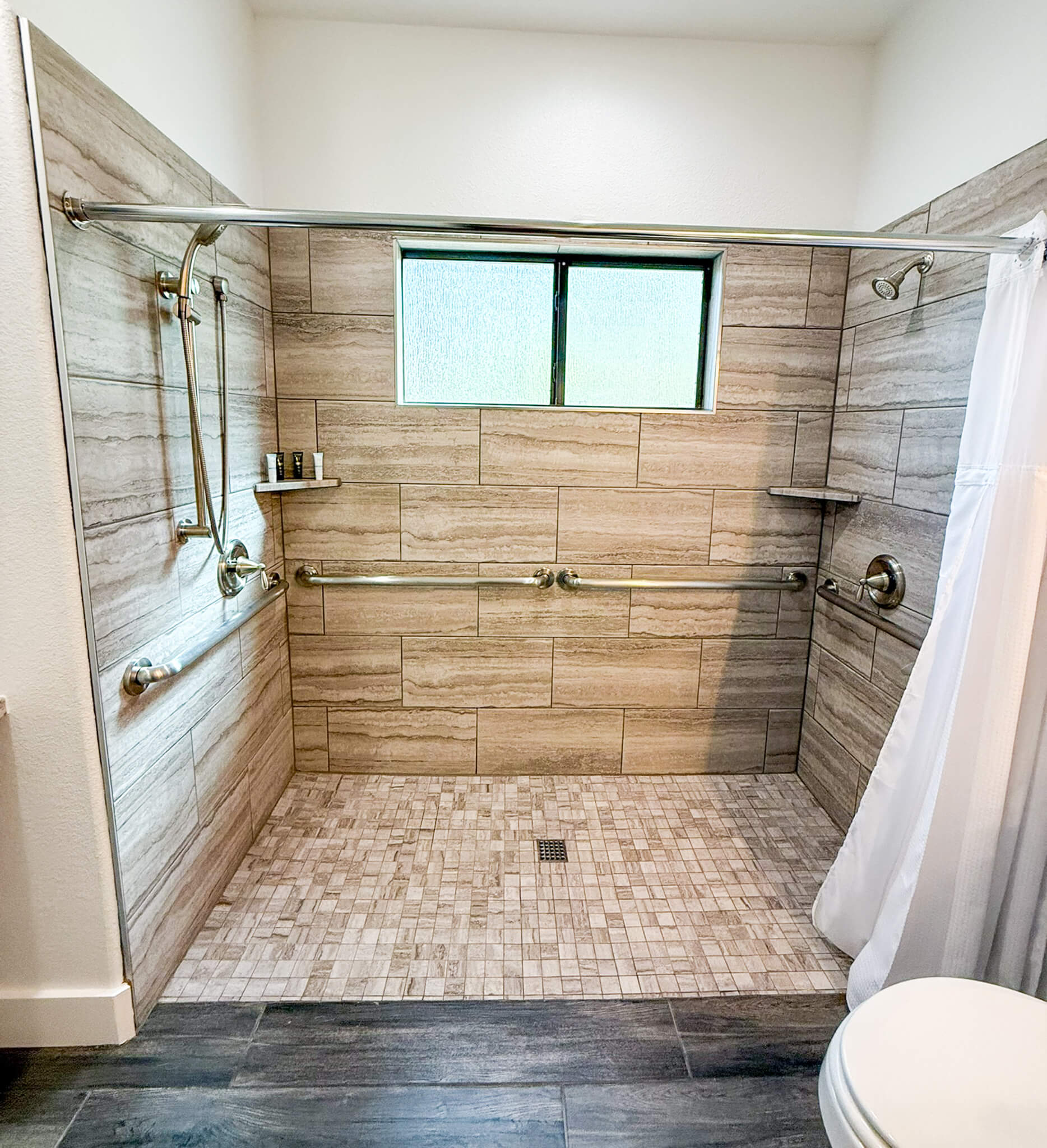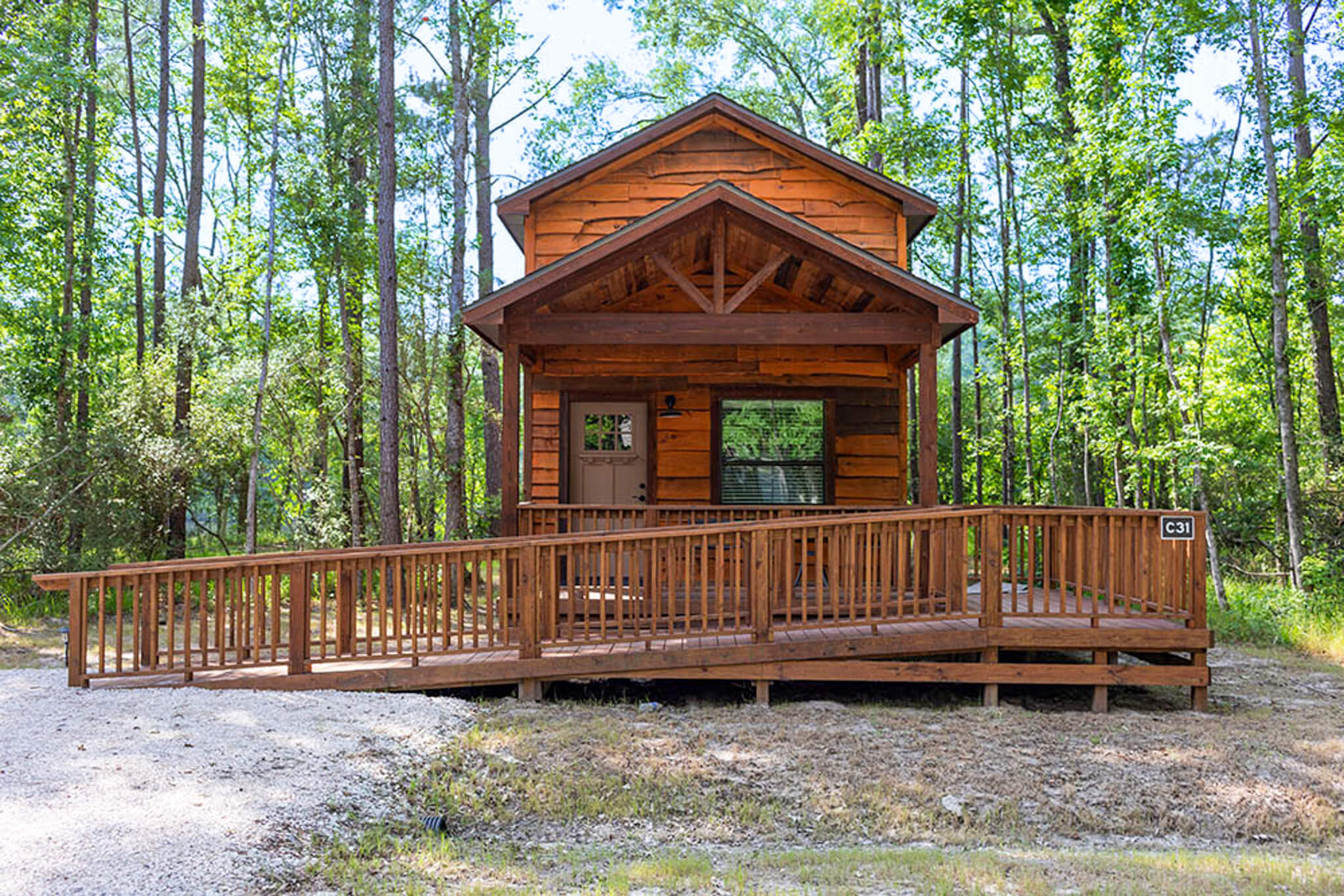 Wheelchair access is available at select locations throughout the resort. Cabin 31 (Water's Edge) and Cabin 33 (Creekside Cabin) are ADA accessible, as are some of our RV sites. While not all rental units are fully accessible, we do offer ramps throughout the resort. Please contact us to confirm accessibility before booking.