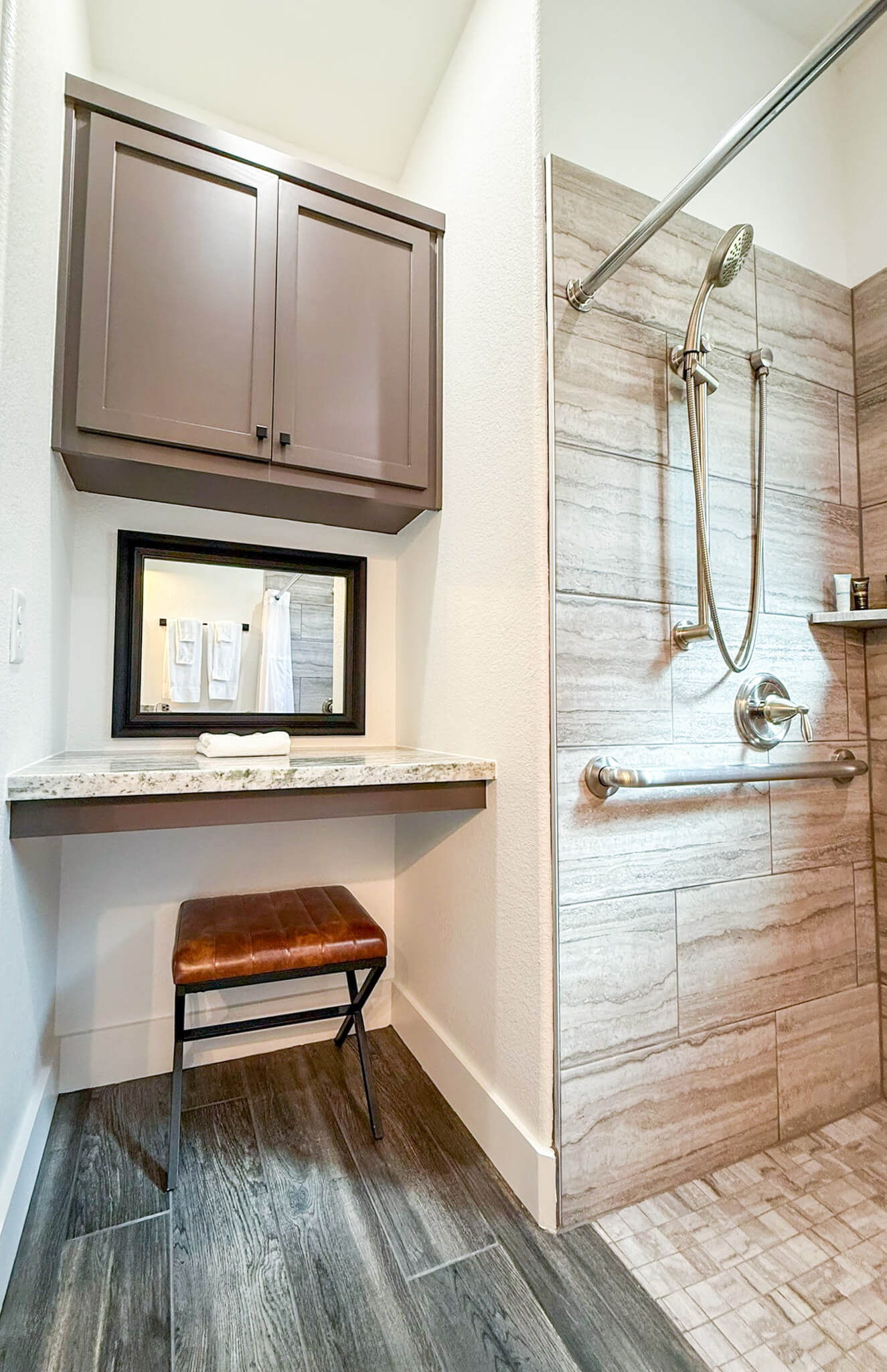 This cabin’s main floor is fully ADA accessible, including the bathroom, bedroom, and kitchen, making it a great option for guests with mobility needs. The back porch opens directly off the bedroom and offers a beautiful waterfront view—the perfect place to unwind with a morning coffee or evening breeze. Please note that the loft is not ADA accessible.